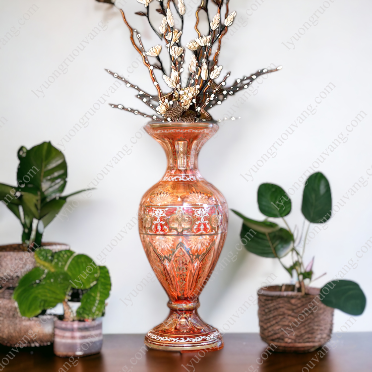 • Bình có thiết kế cao và thon gọn, phần miệng bình rộng và phần thân phình ra, với các họa tiết hoa văn tinh xảo. Thiết kế này mang lại cảm giác thanh lịch và quý phái.
