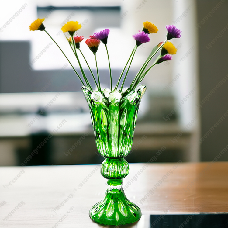 Bộ sản phẩm: Bình hoa pha lê xanh lá cây hai lớp sang trọng CAESAR