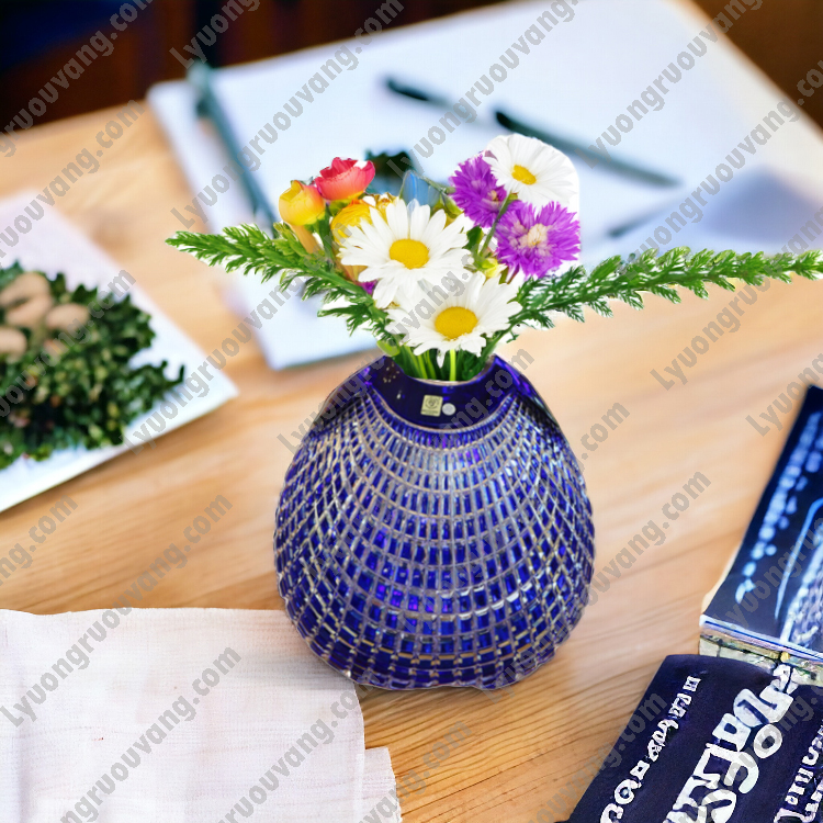 Bộ sản phẩm: Bình hoa pha lê xanh lam đậm hai lớp sang trọng CAESAR