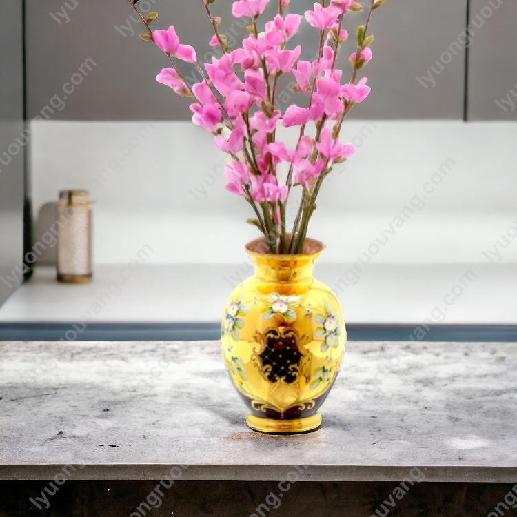 Bộ sản phẩm:Bình mạ vàng 8437 pha lê màu, đắp nổi 5 chùm hoa cổ điển