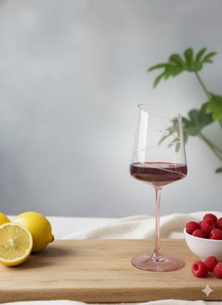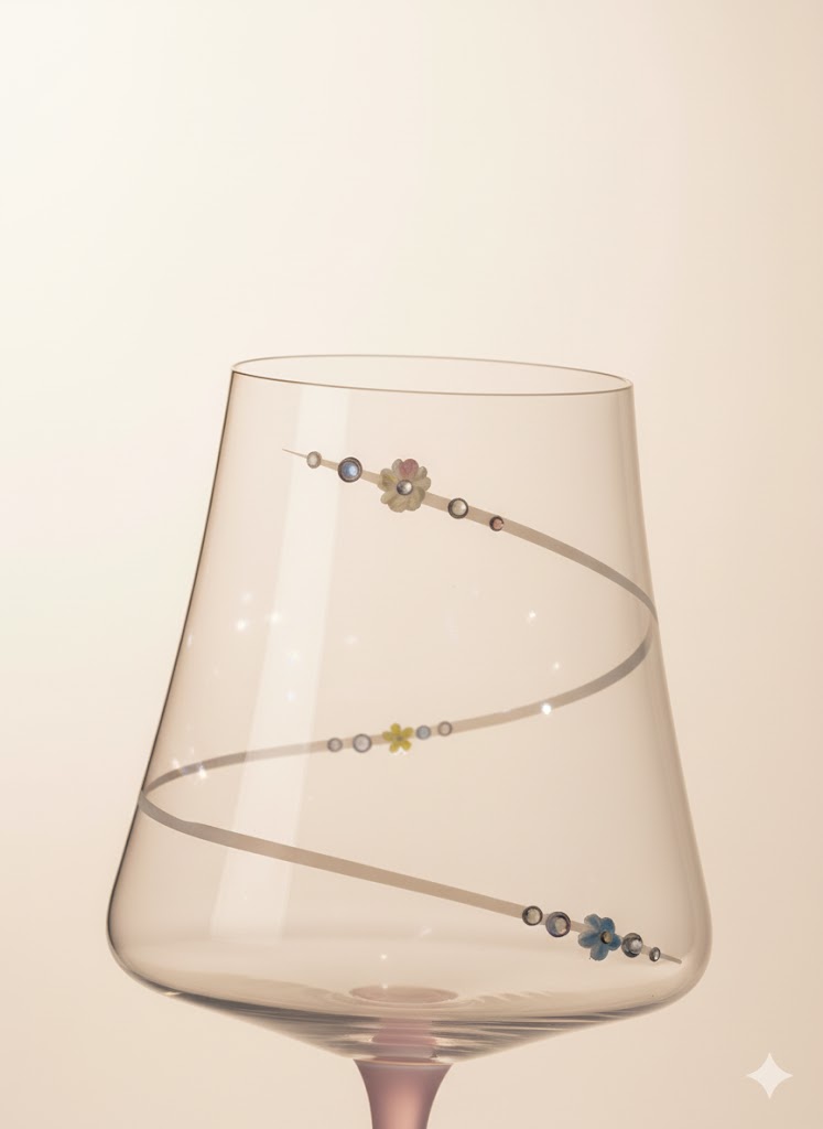 Ly được làm từ pha lê không chì (lead-free crystal), thân ly mảnh nhưng vô cùng chắc chắn. Ánh sáng phản chiếu qua ly tạo nên hiệu ứng lung linh, làm nổi bật màu sắc rượu vang đỏ, trắng hoặc hồng.