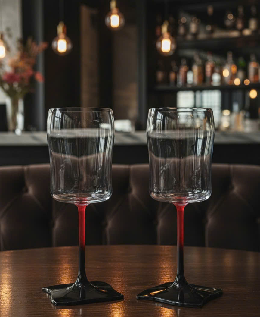 Set 2 Ly Rượu Vang Obsidian Accent 250ml Bohemia – phối màu chân đen Obsidian, thân đỏ Accent, bầu ly trong suốt, sang trọng, nâng tầm trải nghiệm thưởng thức vang.